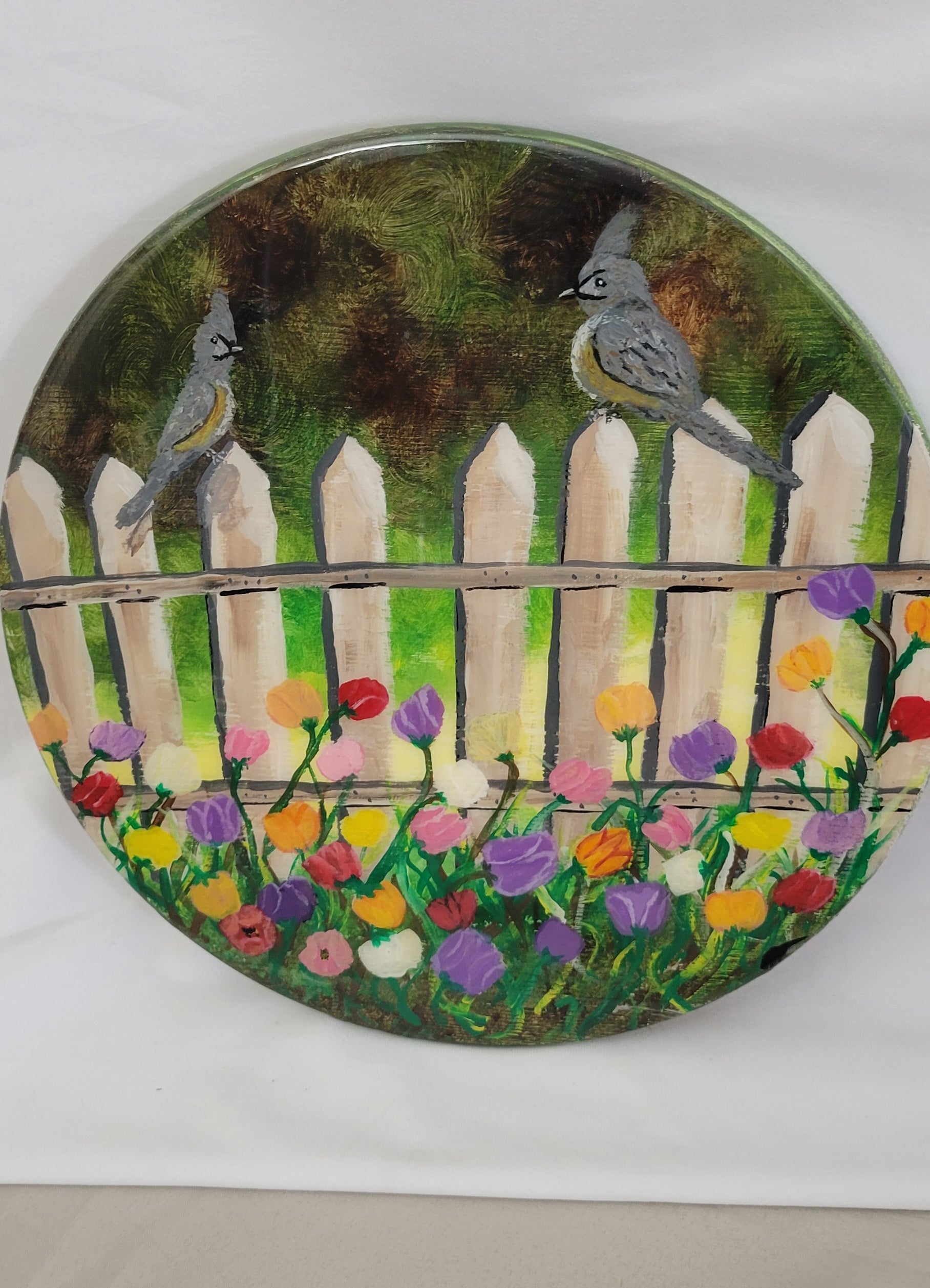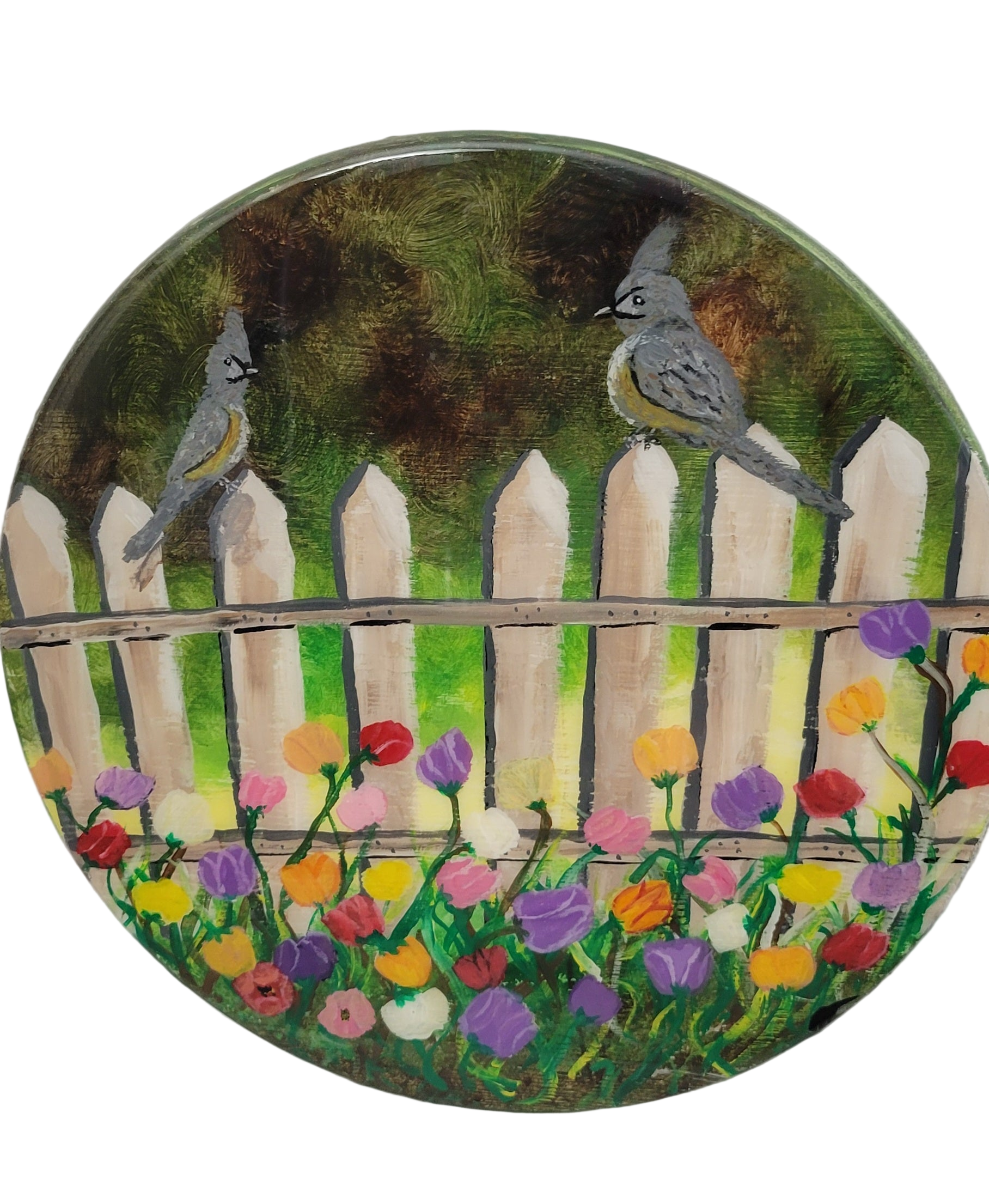 Garden Greetings – Hand Painted Bird & Flower Fence Round
