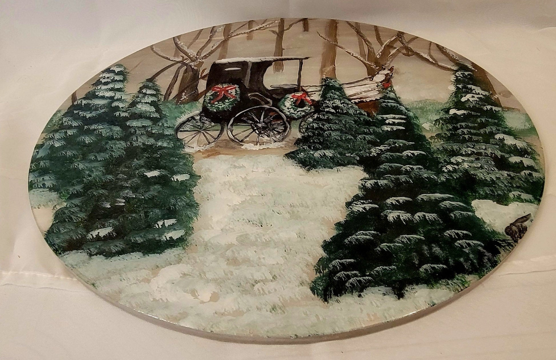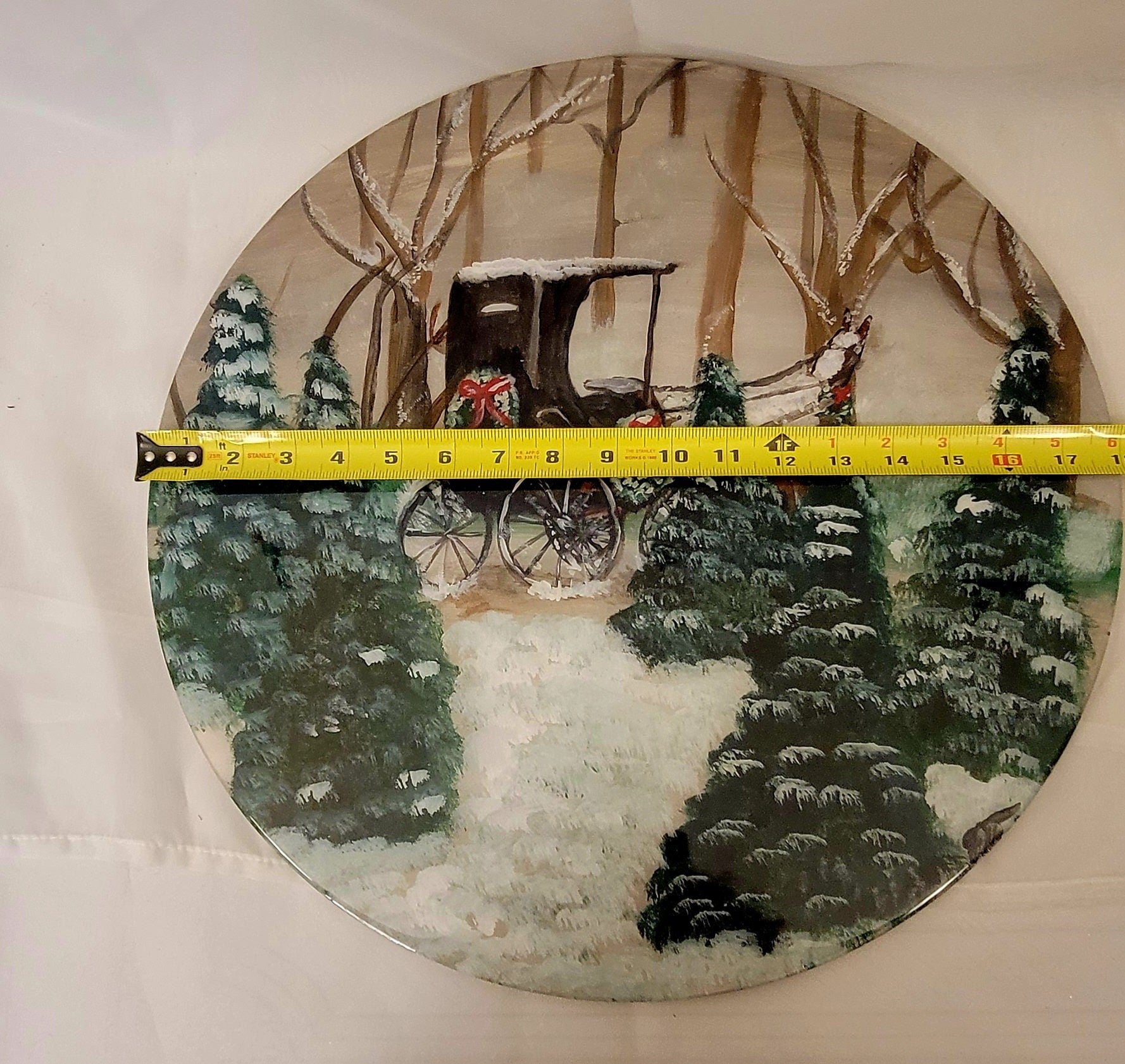 Welcome to the Enchanted World of Artistry! Presenting our latest masterpiece, the "Enchanted Winter Eve", a captivating 18-inch wood round that brings the charm of winter right into your living space!