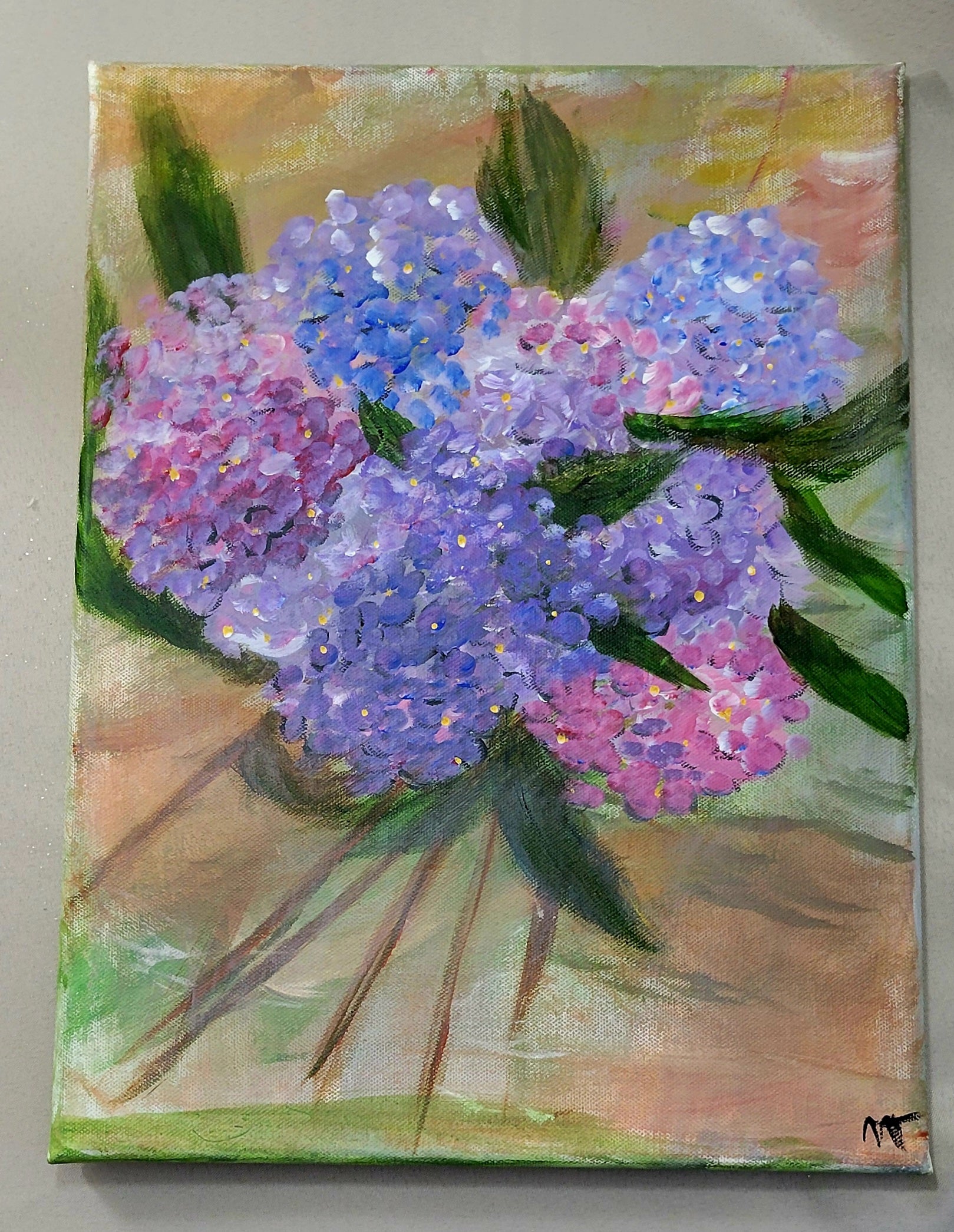 This piece is part of Niki’s seasonal floral series. While similar hydrangea bouquets may be painted again, each canvas is created entirely by hand and will feature its own unique brushstrokes and personality.