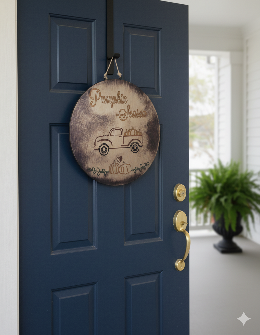 Perfect for your front door, entryway, or kitchen wall, this sign brings that inviting “crisp air, cozy sweater, pumpkin-spice” feeling straight into your home.