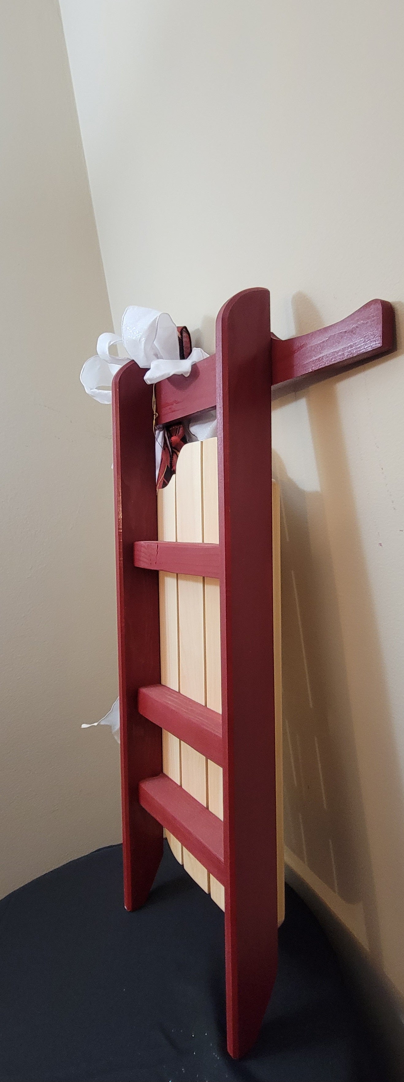 The sled frame is made of birch wood and painted a beautiful Cranberry red.