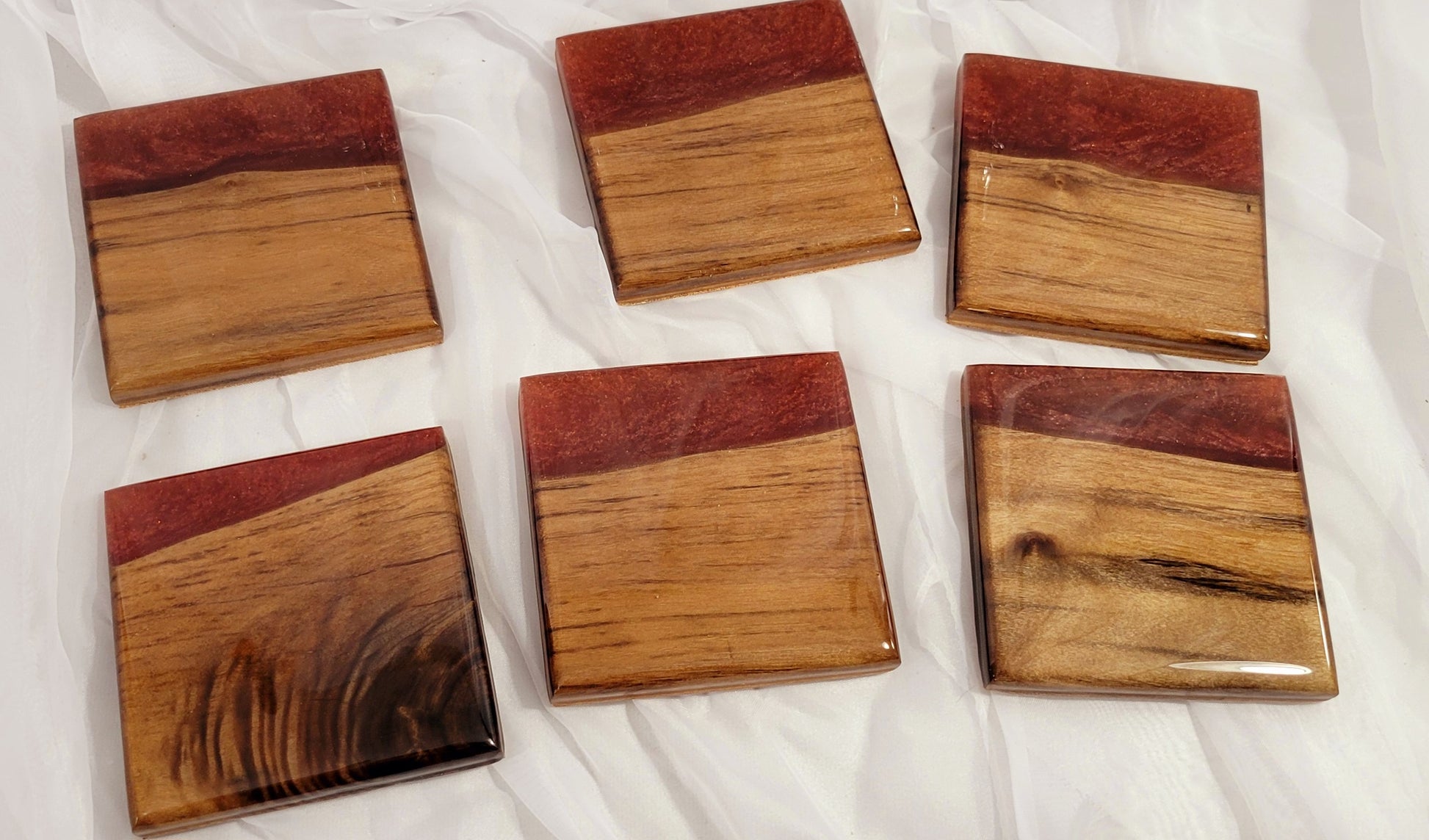 - Set of 6 handmade 4"x4" square black walnut wood coasters