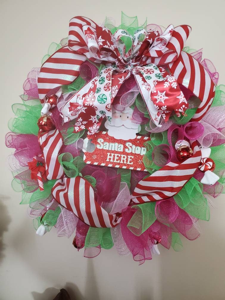 Santa Stop Wreath|Santa Wreath| Santa Workshop Wreath| Fun Christmas Wreath| Red and Green Santa Wreath| Kids Christmas Wreath| Santa Decor