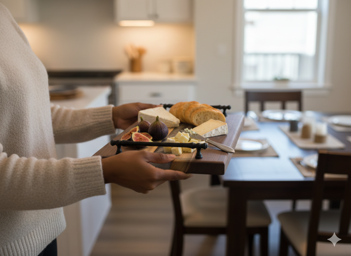 Serve cheeses, cured meats, breads, and seasonal fruit with ease.