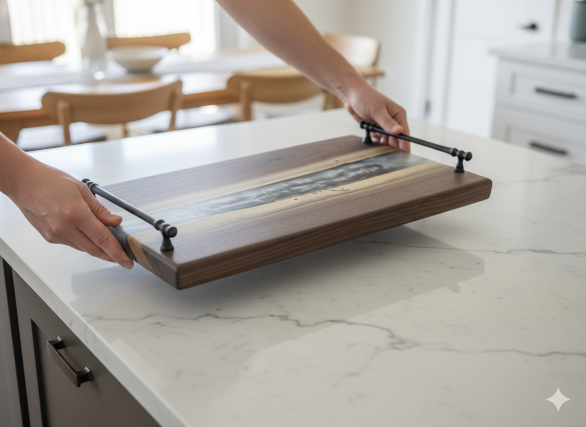 Silver Current – Black Walnut Charcuterie Board with Resin River